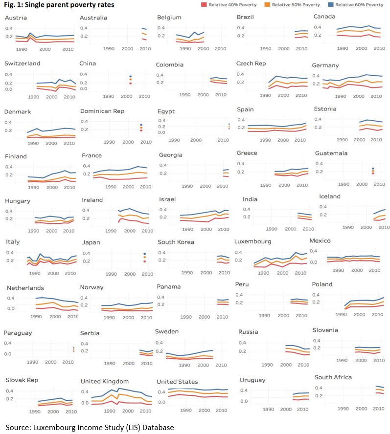 The debate as to whether single-parent families are the cause or consequence of poverty and inequality is widespread. In the United States, it is often a topic of conversation and heated debate at the dinner table. Jason DeParle (2012) wrote in the New York Times an article titled “Two Classes in America, Divided by ‘I Do’” suggesting that above else, the cause of poverty is the result of women’s poor choices of selecting a partner. That inequality between single-and coupled-parent families has much to do with the individual choices of single parents. In response, Bryce Covert (2013) wrote in Forbes magazine an article titled “Bad Relationships Don’t Stand in Poor Women’s Way. Bad Policies Do”. Covert argued, “The problem isn’t who single mothers decide to date. It’s the way the US government fails to support them”. She argued for the US to learn from other countries and how their social policies support single-parent families. Recently (2018), David Brady, Ryan Finnigan, and Sabine Hübgen, wrote an op-ed in the New York Times titled “Single mothers are not the problem”. Their article also supports this position. Their study, used the Luxembourg Income Study (LIS) data, finds that the prevalence of single mothers has little to do with poverty and more to do with a lack of generous policies. Generous policies, like in Denmark, address penalties and consequently these countries have much lower poverty rates.