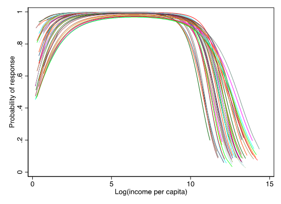Figure 4 Estimated probability of response by total household income per capita using CPS data (1977-2018)