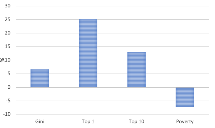 Figure 5 Correction of survey weights controlling for differential unit non-response bias: average % effect on distributional and poverty measures using CPS data (1977-2018)