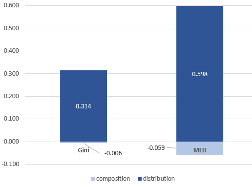 ii While MLD is exactly decomposable into the sum of between-group and within-group inequalities, Gini can accommodate zero (or negative) incomes that might arise if we remove an income source from disposable income.