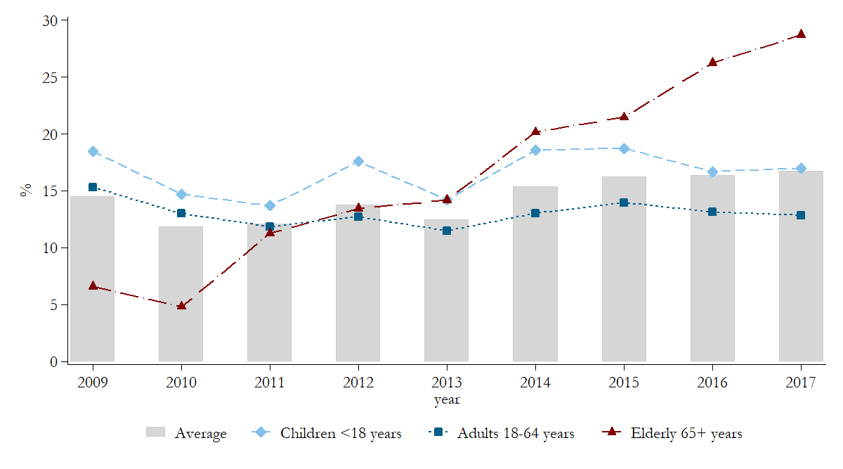 Figure 1. Relative poverty rate in Lithuania in 2009-2017 by age group