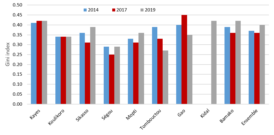 In discussions on inequalities in Africa, Mali often appears as an exception, being the country with the lowest level of inequalities in the West African sub-region (see for example Oxfam, 2019). In this note, we address this issue by looking into the results of an innovative research on the topic. More precisely, we look at inequality in Mali based on income data rather than the more usual consumption-based approach. This research work stems from a collaboration between three institutes, the Agence Française de Développement (AFD), the Mali National Statistical Institute (INSTAT) and LIS Cross-National Data Center in Luxembourg (LIS). LIS and AFD agreed on a collaboration aimed to expand the LIS Database to middle- and low-income countries to allow for better comparisons among those countries and in comparison to high-income countries. At the same time, AFD and INSTAT signed an agreement aimed at deepening the analysis of INSTAT income data and reinforcing the internal capacities. Within the scope of these agreements, INSTAT has provided LIS with the entire microdata series of the Malian Modular and Permanent Household Survey (EMOP) from 2011 to 2019 for LIS to harmonise it and include it into the LIS Database.