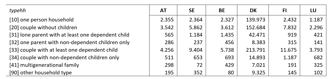 Table A2. (Unweighted) sample size of each household type in the total sample